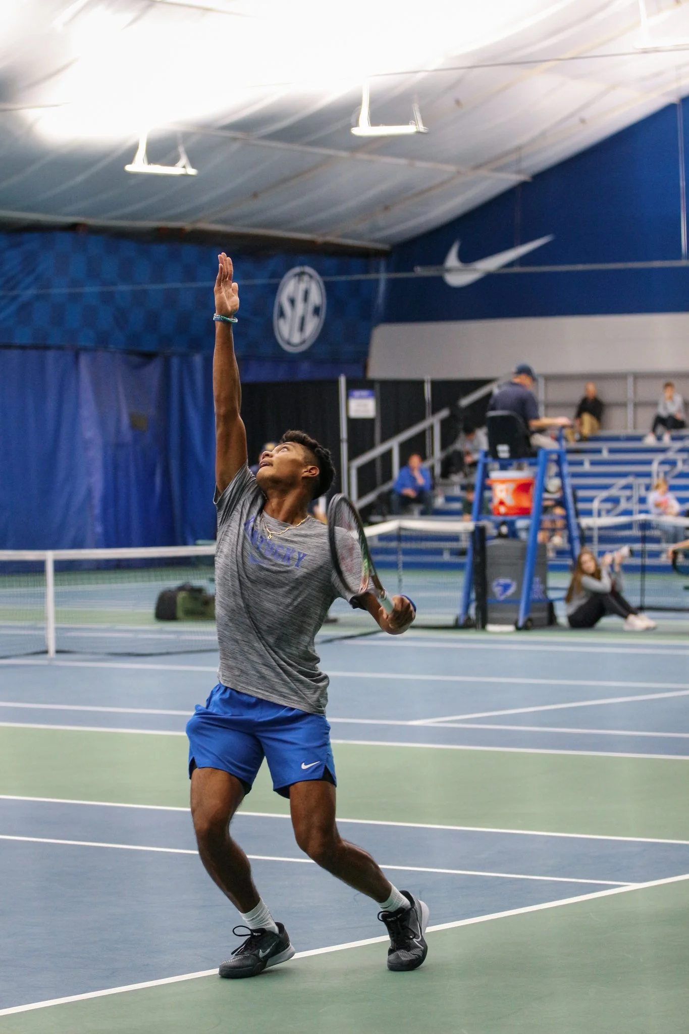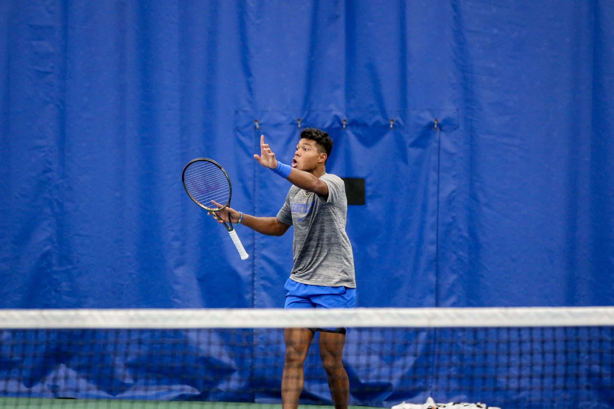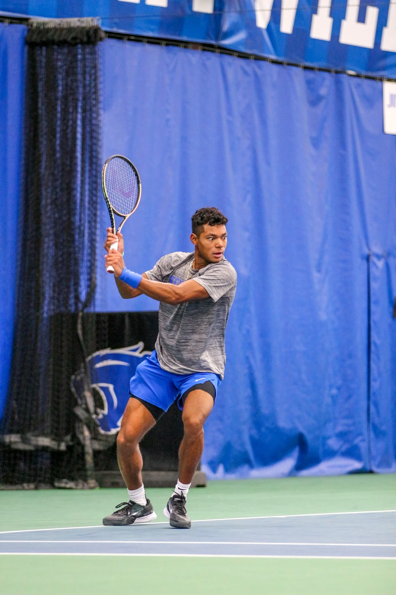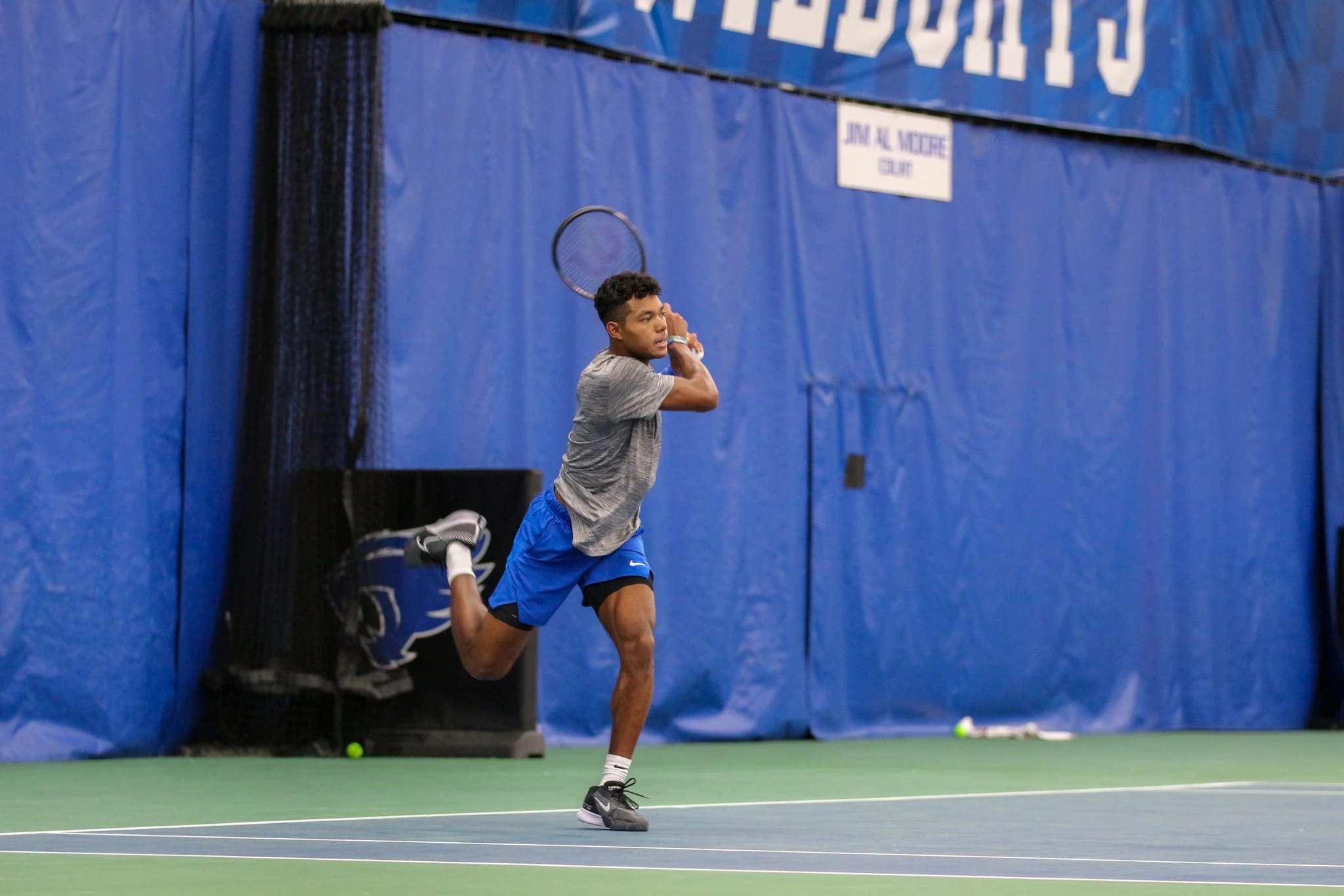 Photos of ECHL hockey and NCAA Men’s Tennis both during the 2023-2024 season.