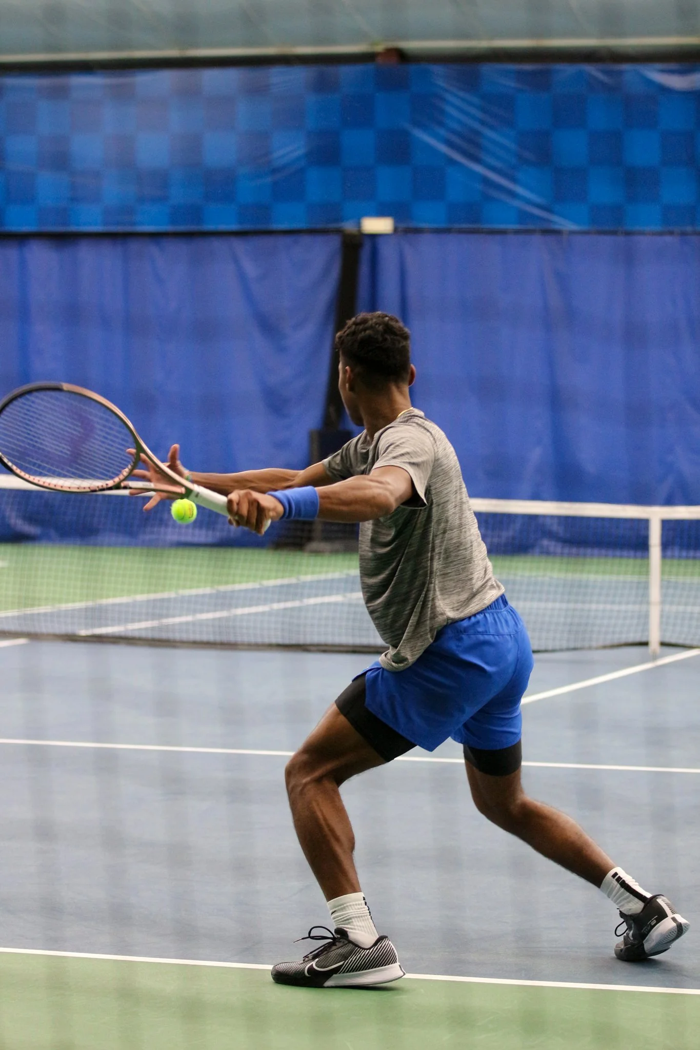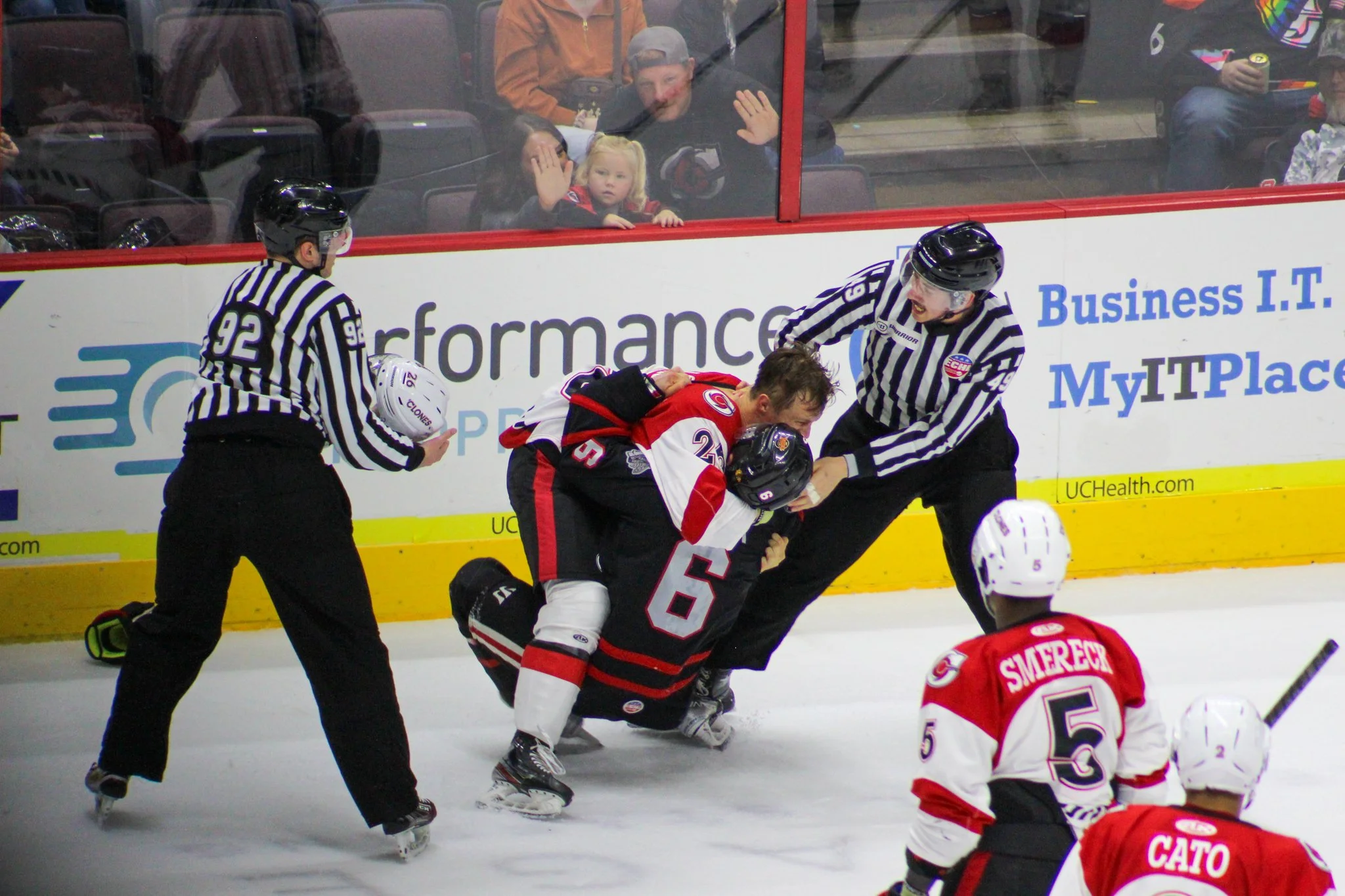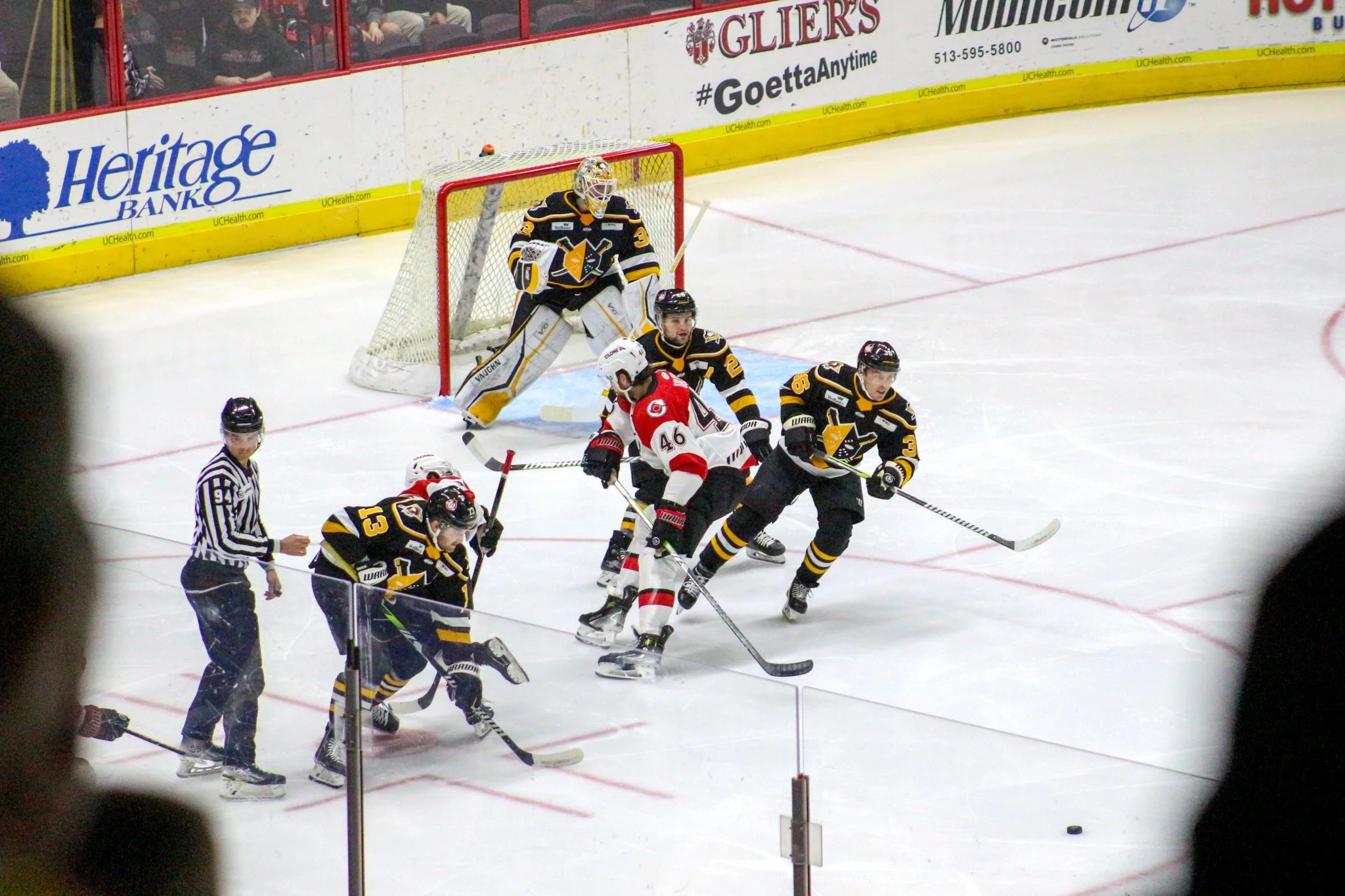 Photos of ECHL hockey and NCAA Men’s Tennis both during the 2023-2024 season.