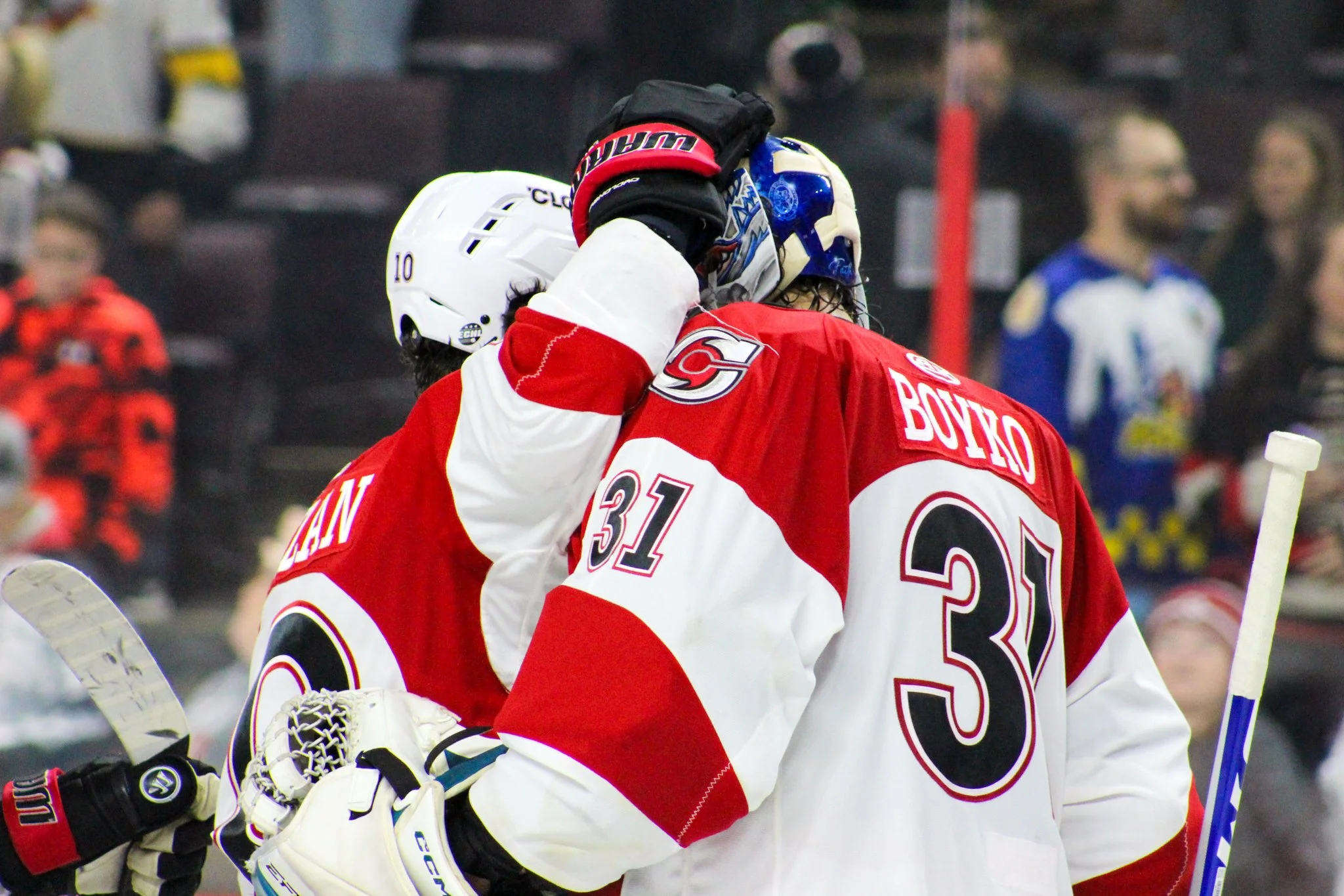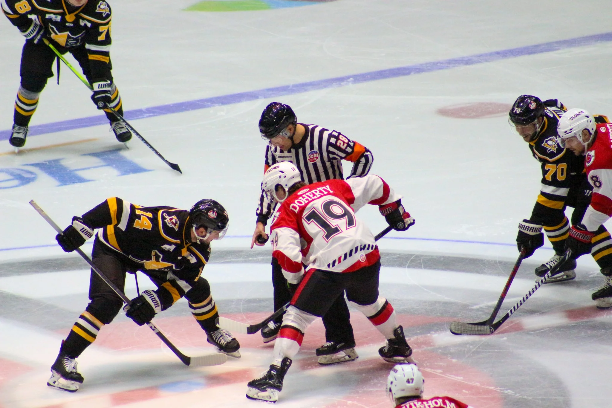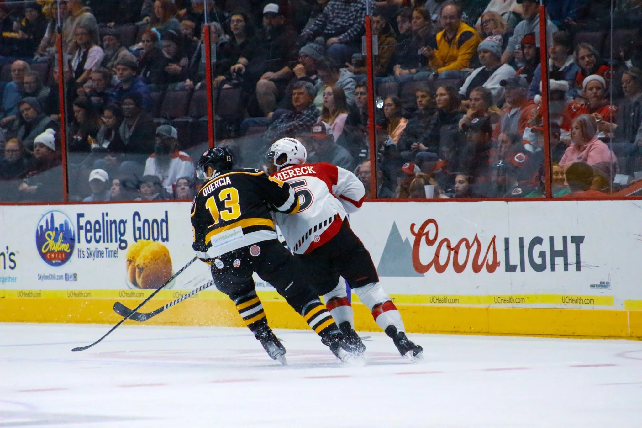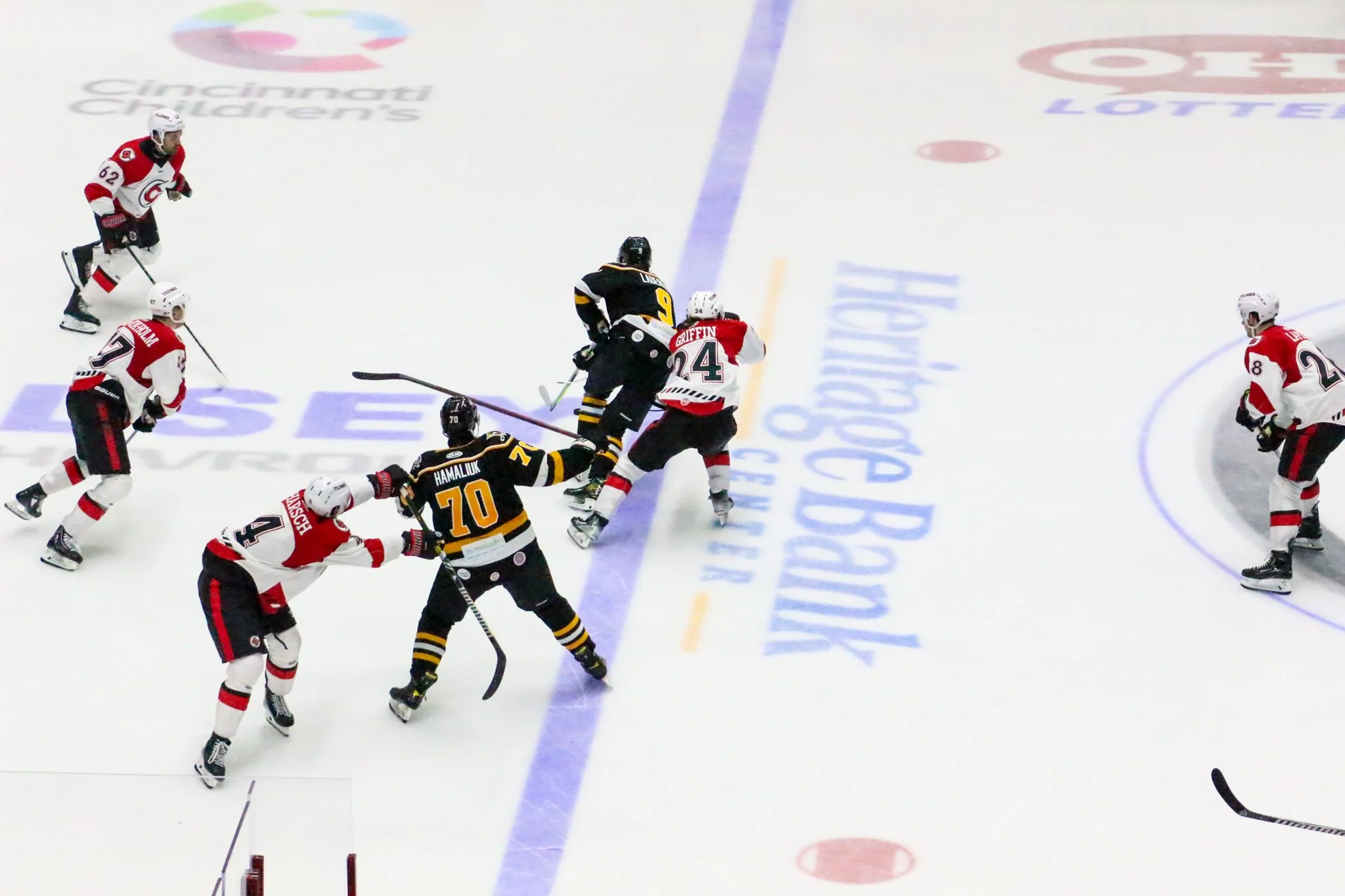 Photos of ECHL hockey and NCAA Men’s Tennis both during the 2023-2024 season.